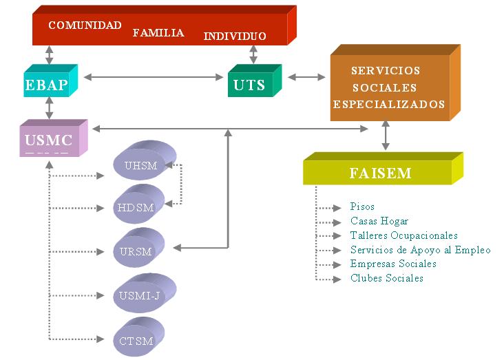 La efectividad de las intervenciones en el abordaje de los trastornos mentales, requiere la participación de equipos multidisciplinares (desde la perspectiva (bio-psico-social) que interactúan desde los diferentes niveles asistenciales. El establecimiento de criterios para las derivaciones y métodos de cooperación, permite prestar una atención de calidad con la integración de todos los servicios implicados en la atención a las personas con trastorno mental.